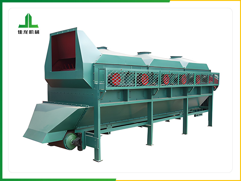 輥式除塵機又稱羊角篩,它往往多臺串聯(lián)使用。其轉(zhuǎn)鼓上固定有錐形短棒。轉(zhuǎn)動時把弧形篩板上的草片打散翻動,并使重物如沙塵、谷料等通過篩板落下。